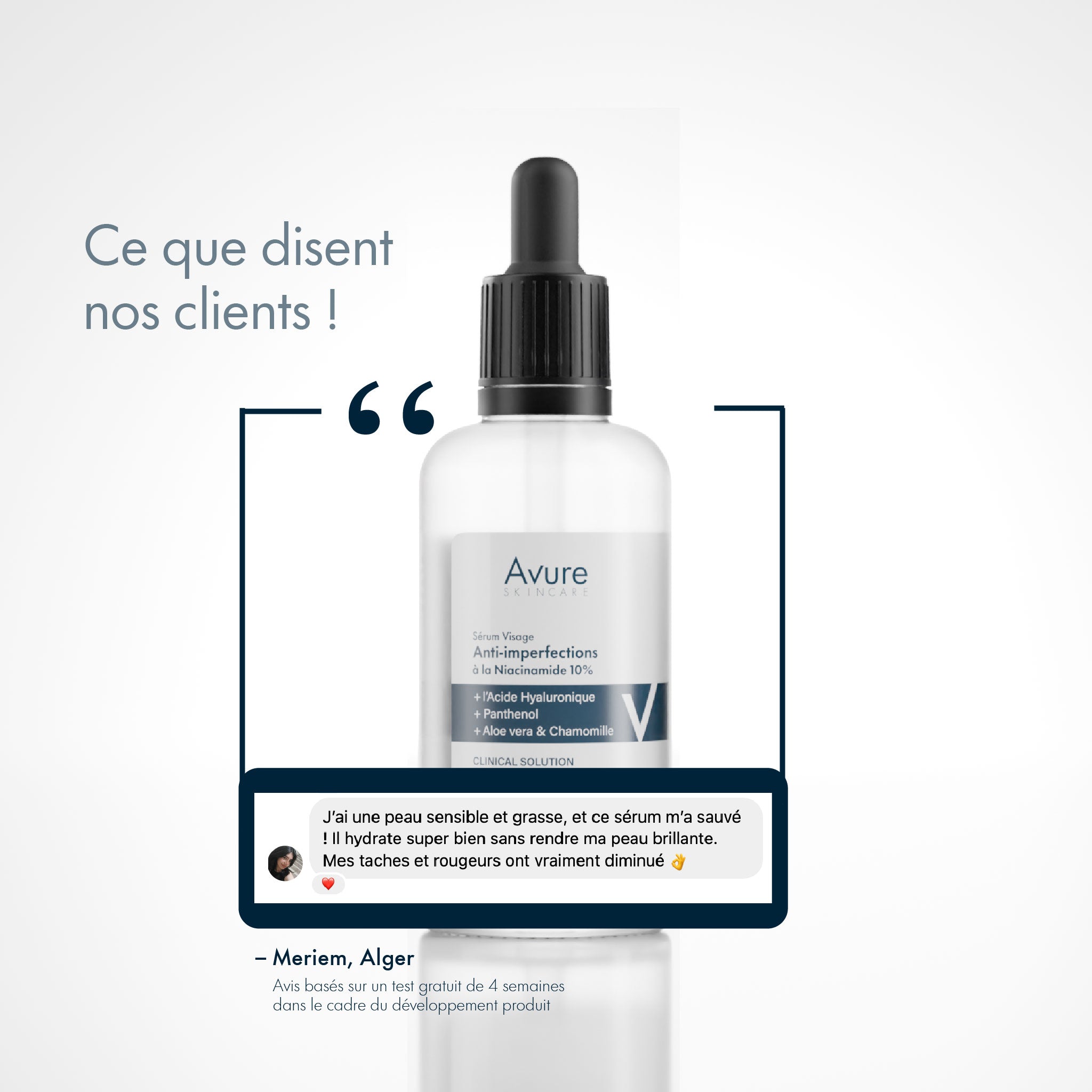 - Sérum Anti-Imperfections Niacinamide 10% : Réduit les imperfections, affine les pores et hydrate intensément pour une peau visiblement plus saine.